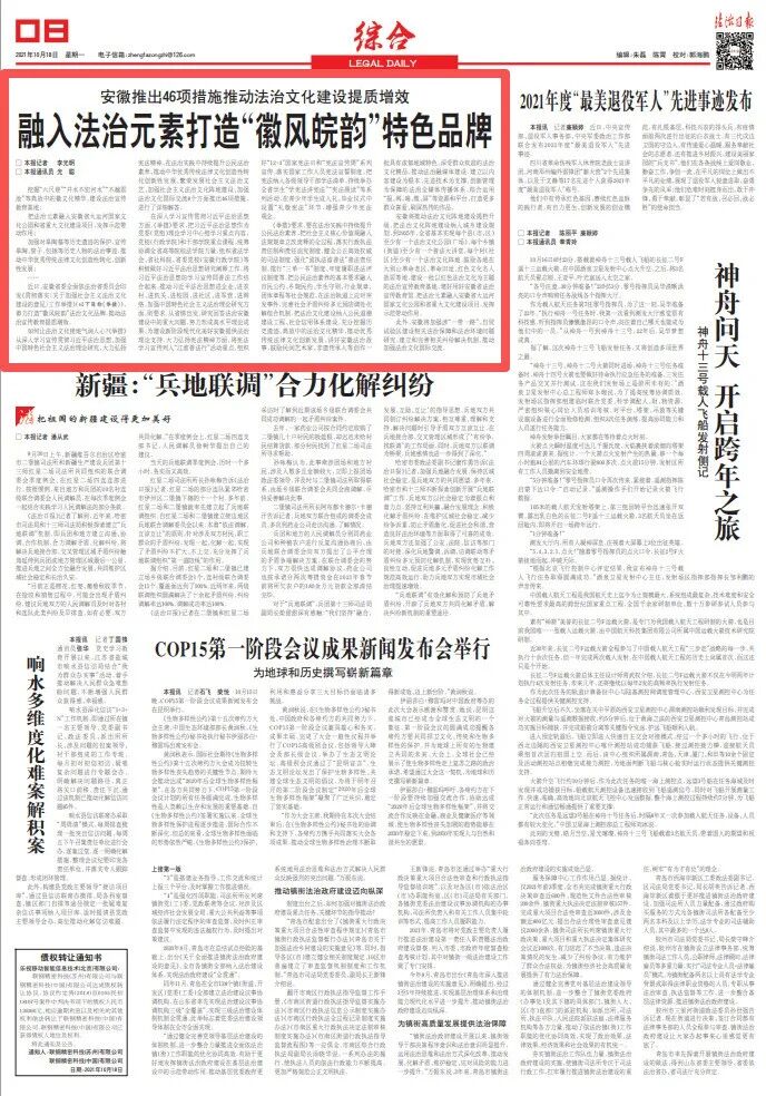 《法治日报》聚焦安徽推出46项措施推动法治文化建设提质增效
